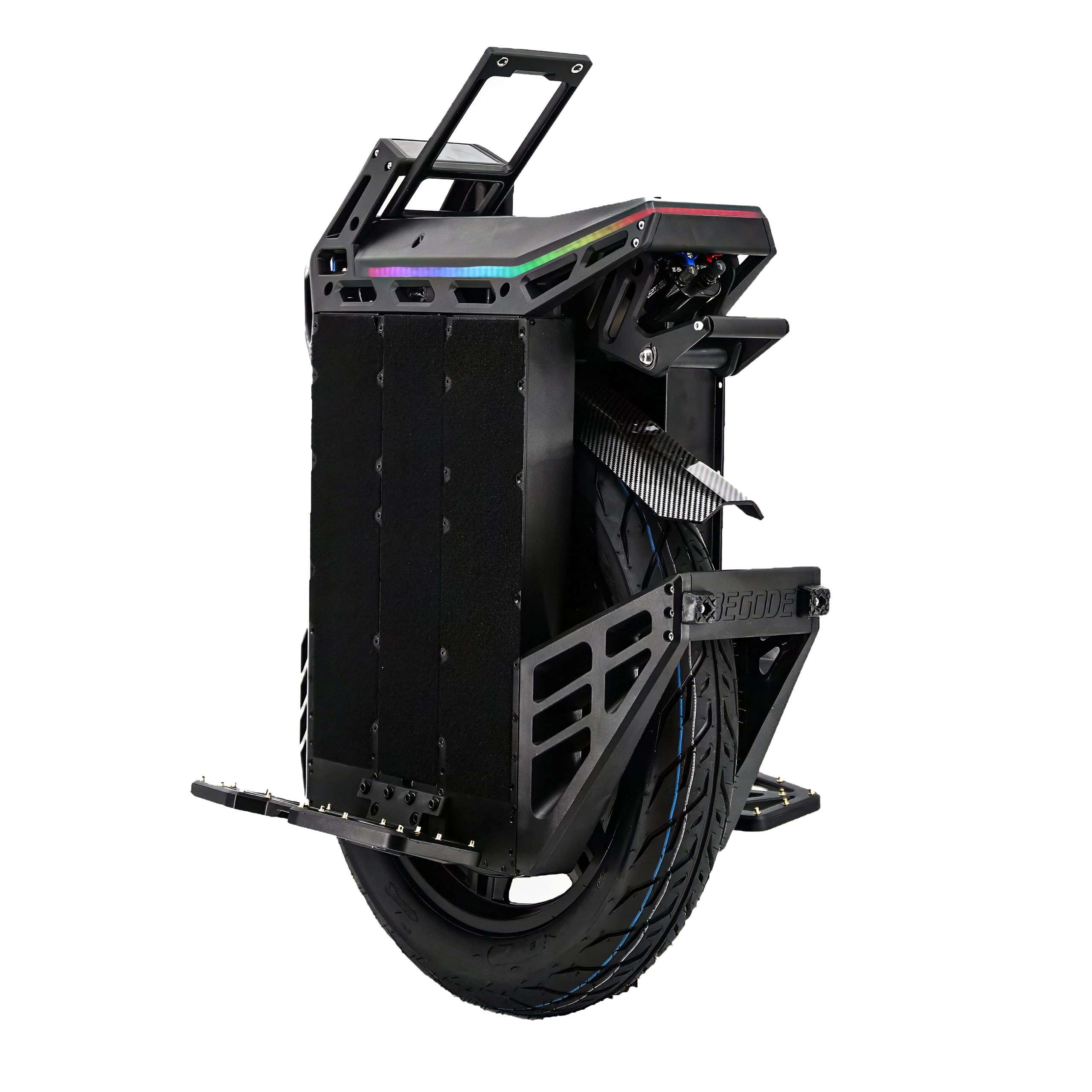 El Begode Blitz redefine el rendimiento con su diseño ligero, eliminando 7 kg (15,7 lbs) en comparación con su predecesor, el Master V4. Con un peso de sólo 36 kg, este monociclo eléctrico está diseñado para la velocidad. La reducción de peso se logra mediante el uso extensivo de aleación de magnesio para el motor, cajas de baterías, y otros componentes estructurales. Es el machine más ligero de su clase sin comprometer su resistencia