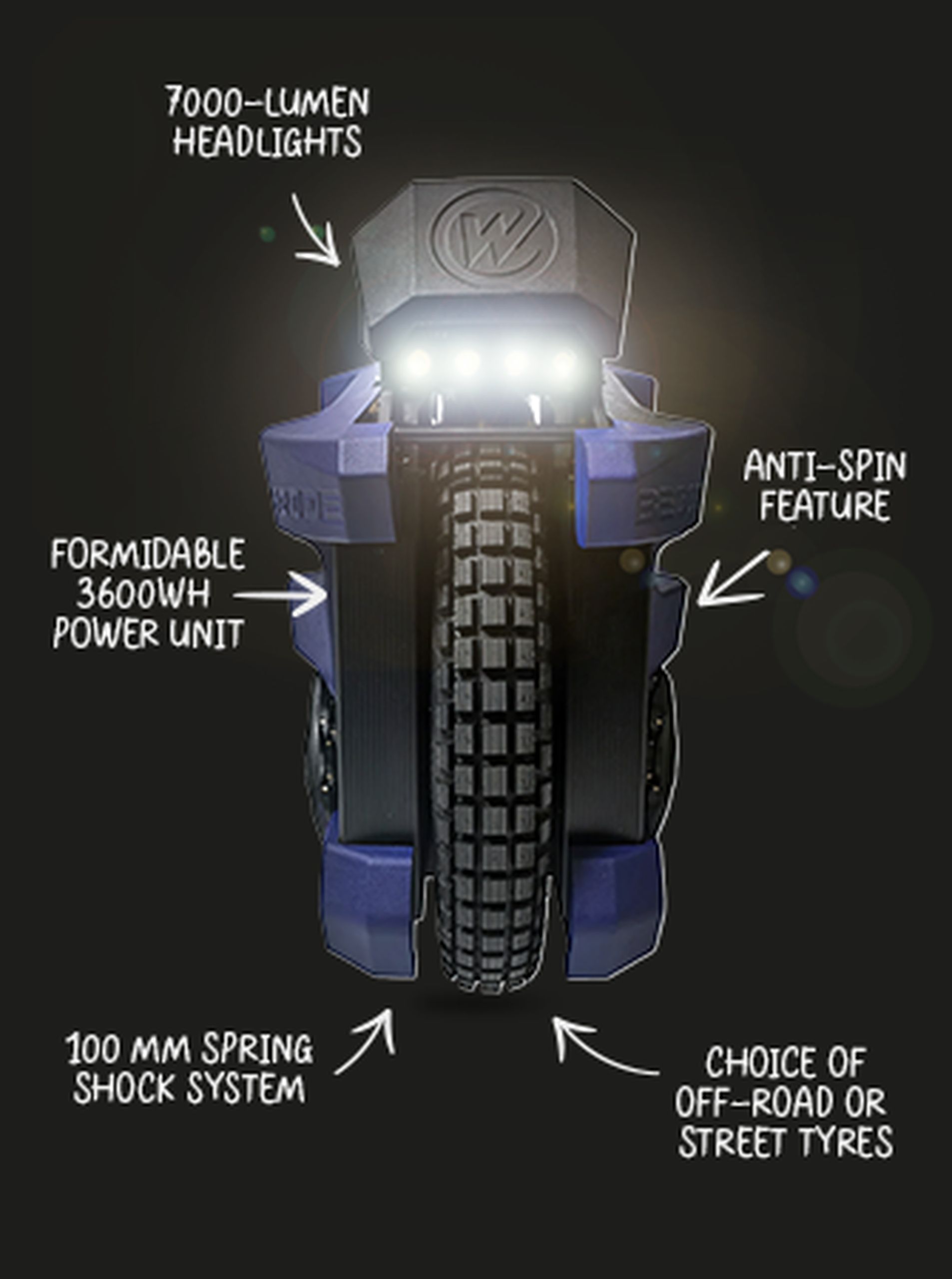 Las funciones de seguridad, como el botón antigiro, los pedales de gran tamaño para una colocación estable de los pies y el faro de 7000 lúmenes, garantizan una conducción segura, tanto de día como de noche. La incorporación de altavoces Bluetooth añade una dimensión de entretenimiento a cada viaje