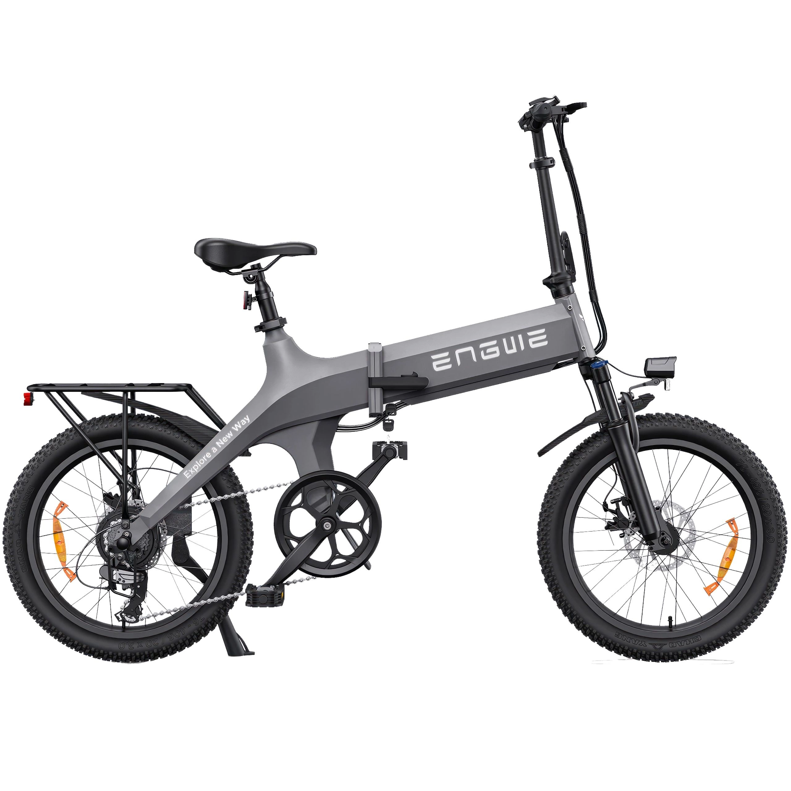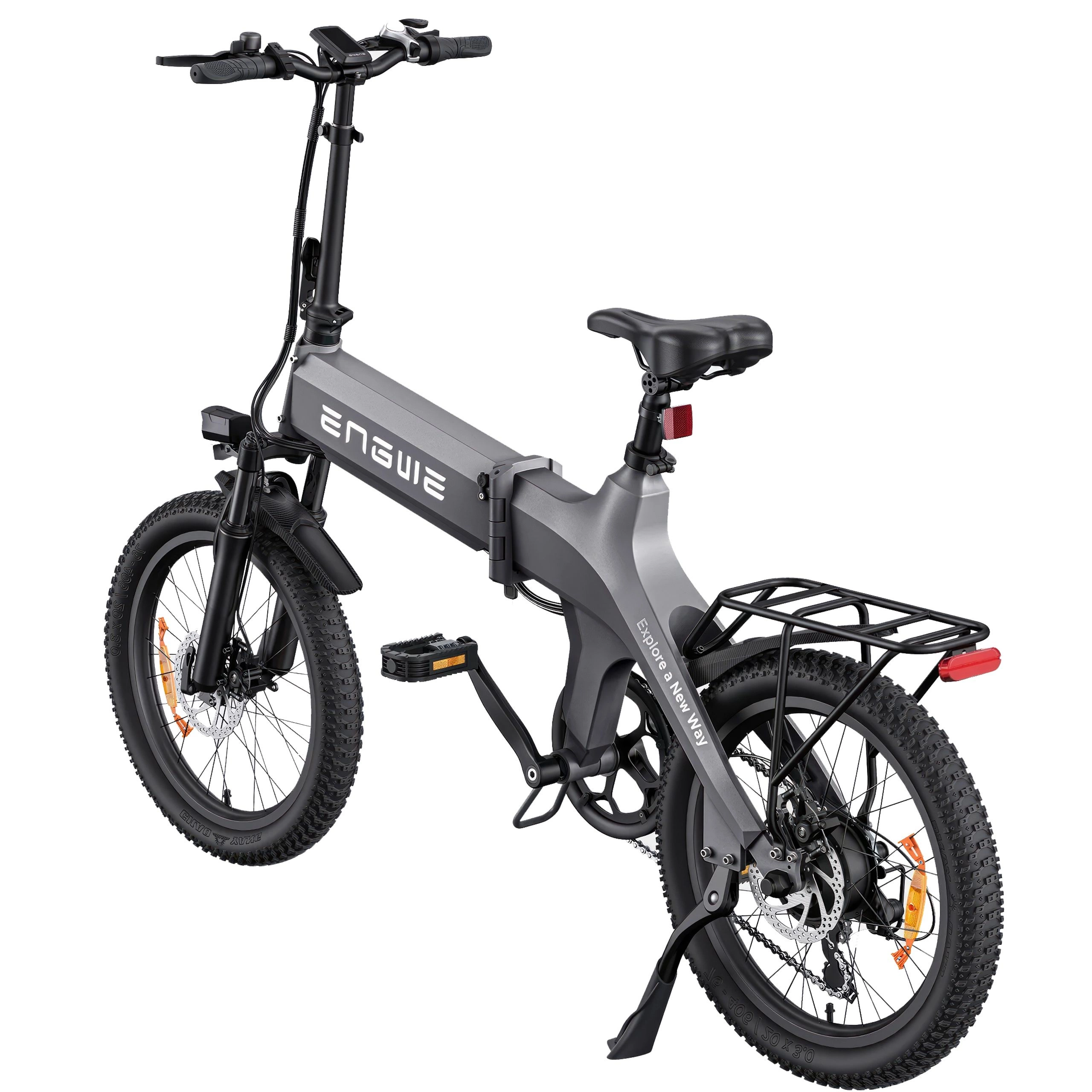 La ENGWE C20 Pro ofrece una conducción suave y estable gracias a sus grandes neumáticos y al sistema de doble suspensión. Tanto si se desplaza por las calles de la ciudad como si explora terrenos más accidentados, la bicicleta se maneja con facilidad.