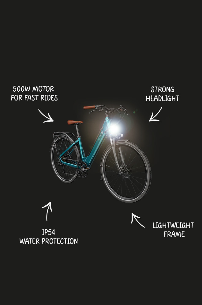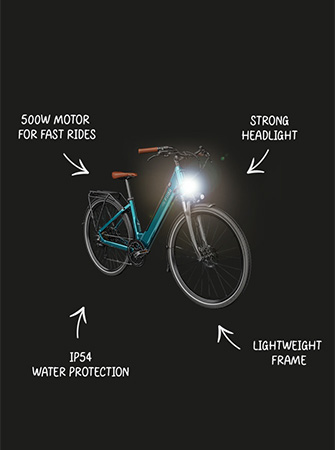 La seguridad se ve reforzada por varias características integradas. Los neumáticos 700c incluyen flancos reflectantes para mejorar la visibilidad con poca luz. El faro delantero giratorio se mueve con la dirección para iluminar los giros, mientras que la luz de freno autoiluminada se activa durante la deceleración. El sistema de cambio mejorado de 7 velocidades proporciona unas transiciones de marcha más suaves en comparación con las versiones anteriores de 6 velocidades.