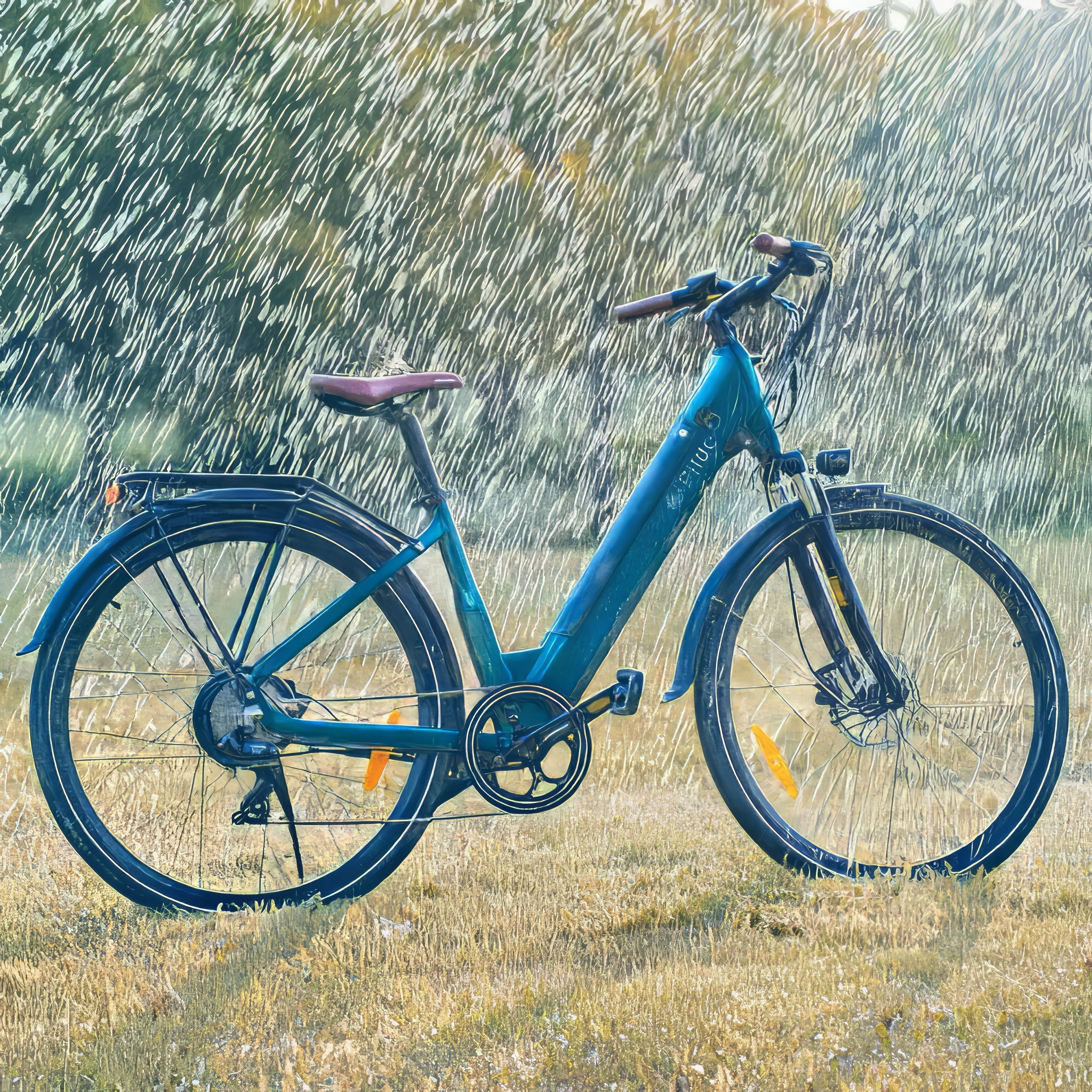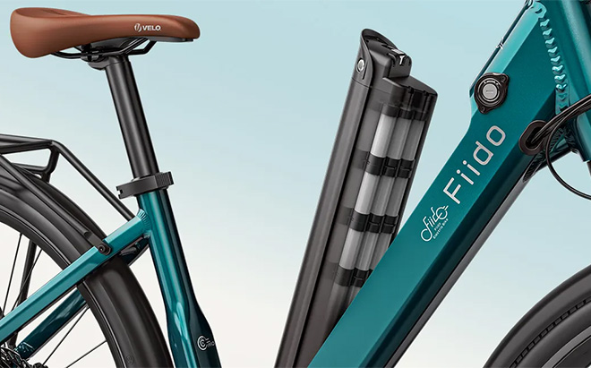La Fiido C11 Pro se presenta en un precioso color azul esmeralda con asientos y puños marrones que le dan un aspecto clásico. También hay disponible una versión en blanco. El cuadro escalonado facilita la subida y bajada, mientras que las ruedas de 700c mantienen la elegancia. Una batería oculta, guardabarros completos y un portabultos integrado la hacen práctica sin parecer desordenada.