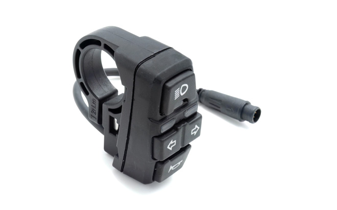 Esta pieza mejora la seguridad. Es fácilmente accesible en el manillar del Kaabo. Puede manejar rápidamente las funciones clave de scooter eléctrico sin distracciones. Facilita la activación instantánea de las luces para una mejor visibilidad del camino y la señalización de sus próximos movimientos mediante los intermitentes.