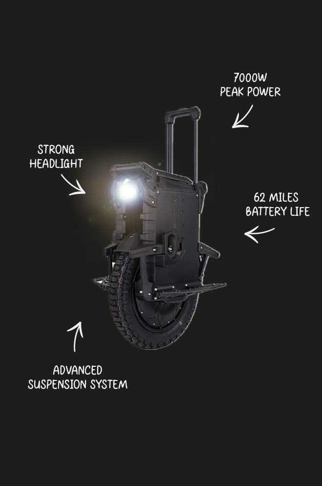 El Leaperkim Patton S es un potente vehículo eléctrico de una rueda que se maneja en carreteras lisas y caminos de tierra. Con un peso de 36,5 kg, está fabricado con un potente motor de 3000W. La gran batería utiliza celdas Samsung de alta calidad, y todo el conjunto se asienta sobre un sistema de suspensión ajustable que te ayuda a mantenerte estable a altas velocidades.