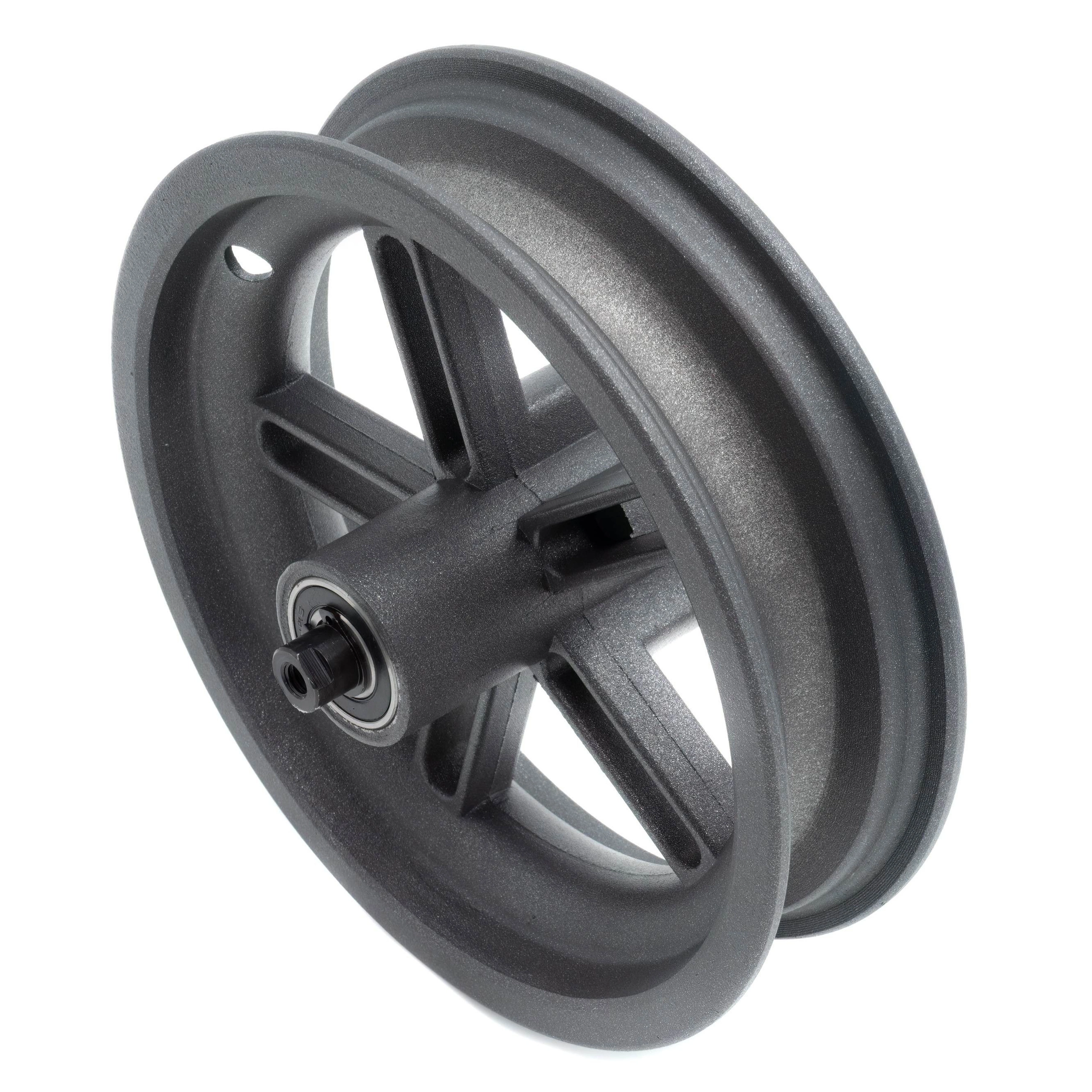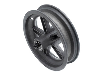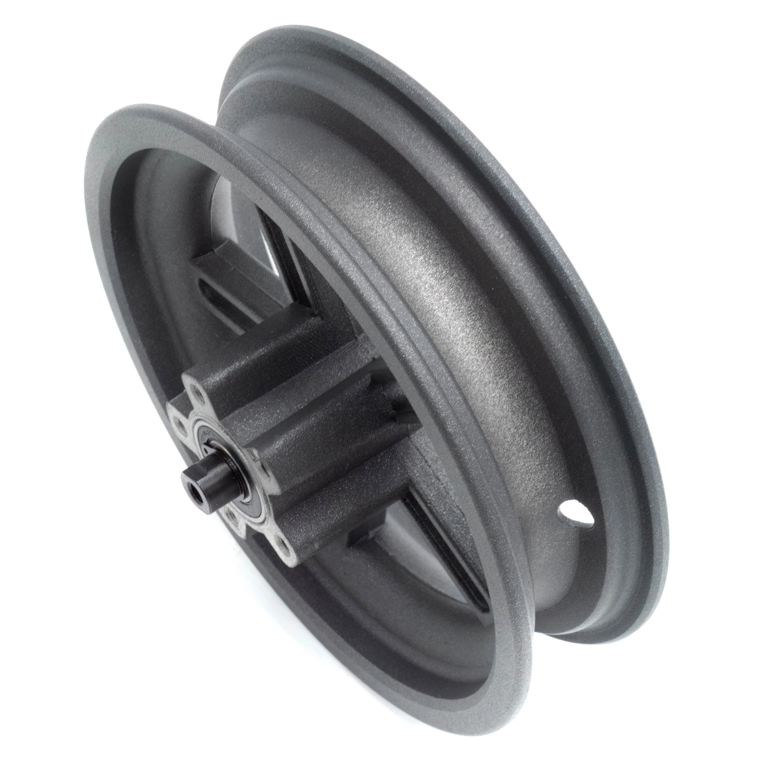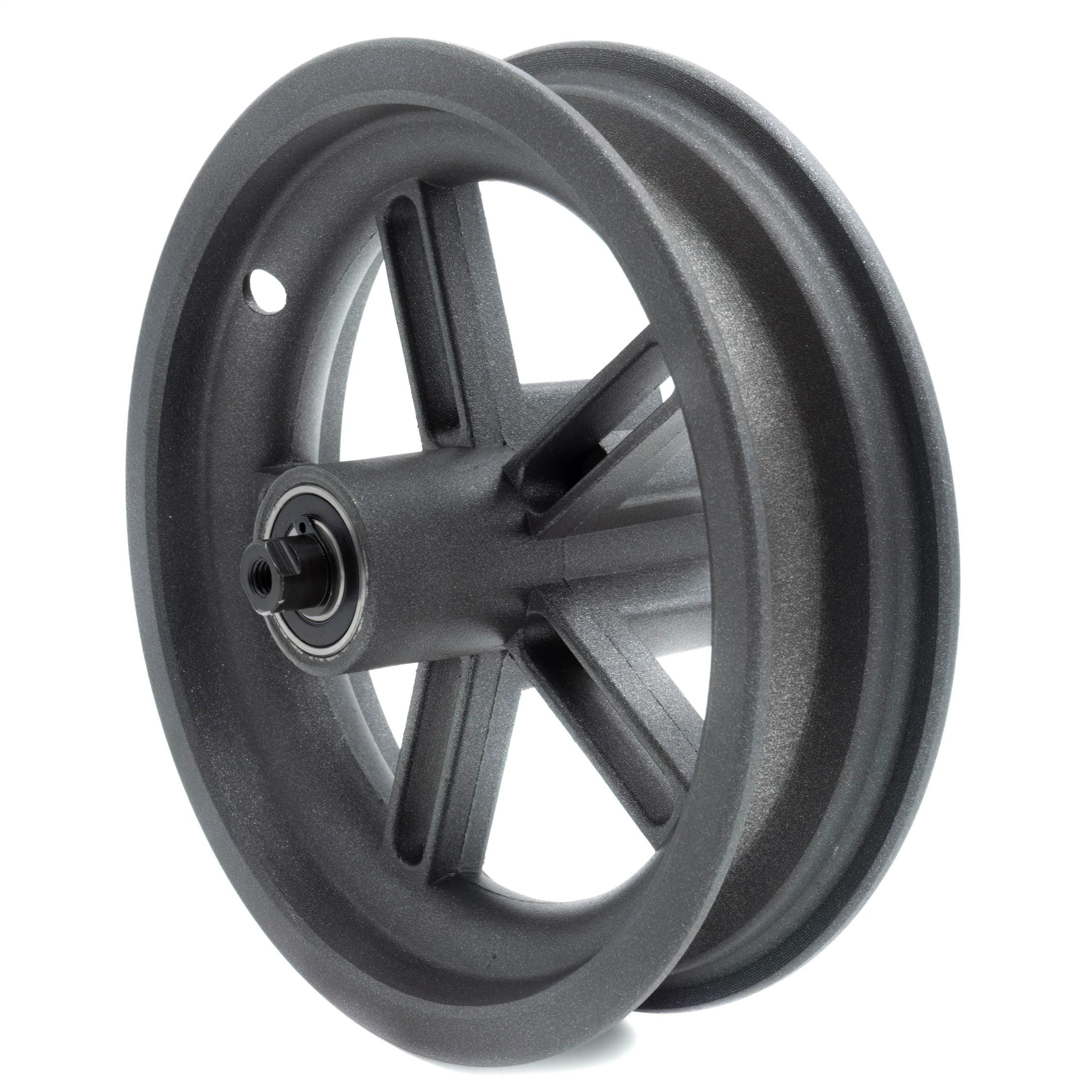 La rueda trasera de la Xiaomi scooter eléctrico está fabricada en aluminio, lo que la hace ligera y resistente a la corrosión. Consta de un buje en el que se fija el disco de freno, una llanta en la que se monta el neumático y rodamientos que minimizan la resistencia a la rodadura y aumentan el rendimiento de la conducción.