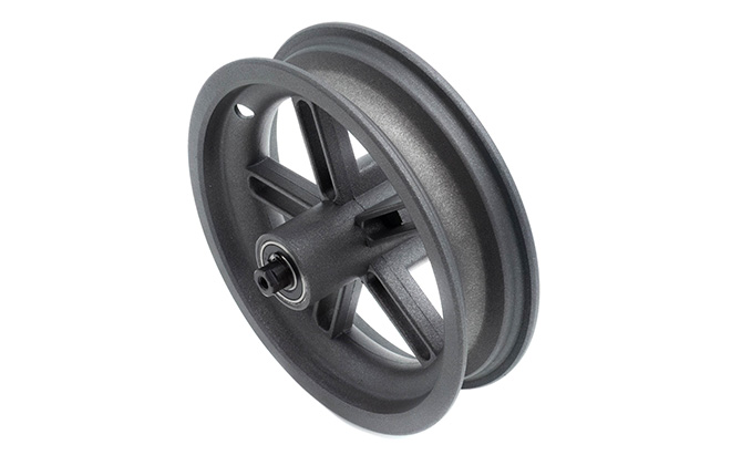 La llanta trasera de la Xiaomi scooter eléctrico pesa alrededor de 650 g (1,4 lb), por lo que es ligera y no afecta a la dirección. Este componente estabiliza y soporta el neumático y es el responsable de la seguridad en la conducción. Toda la estructura está diseñada para ser duradera.