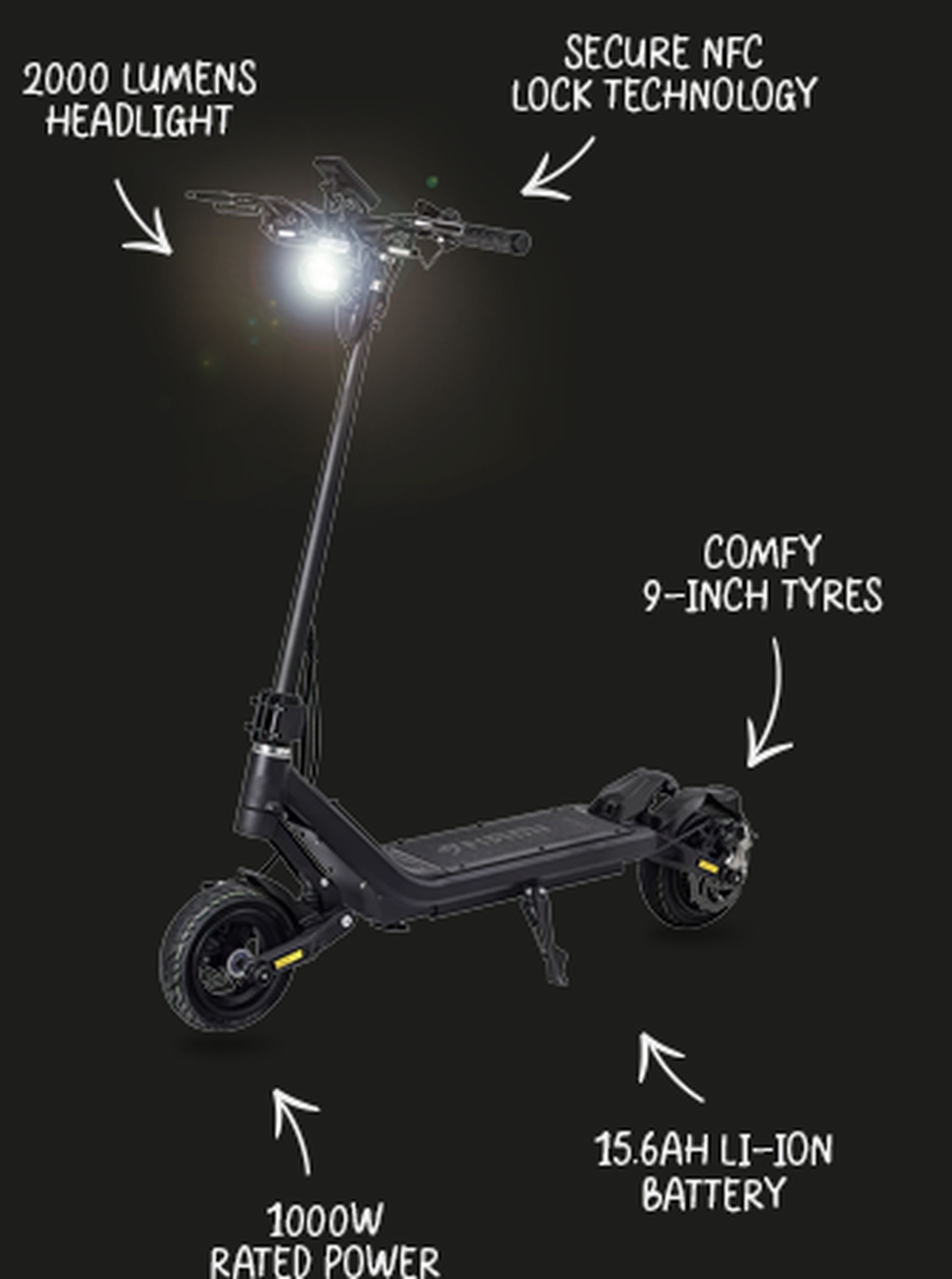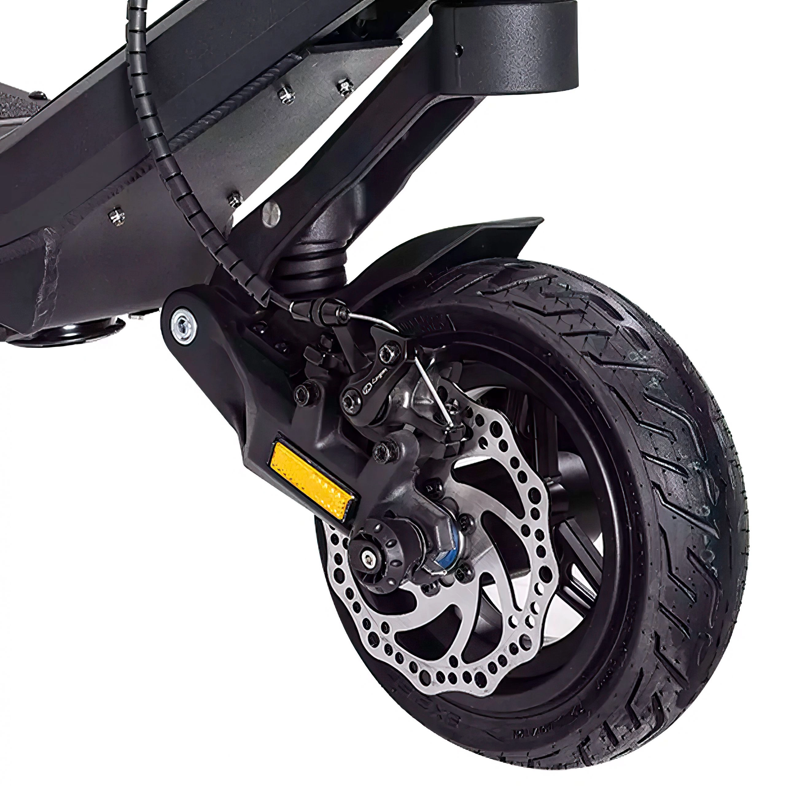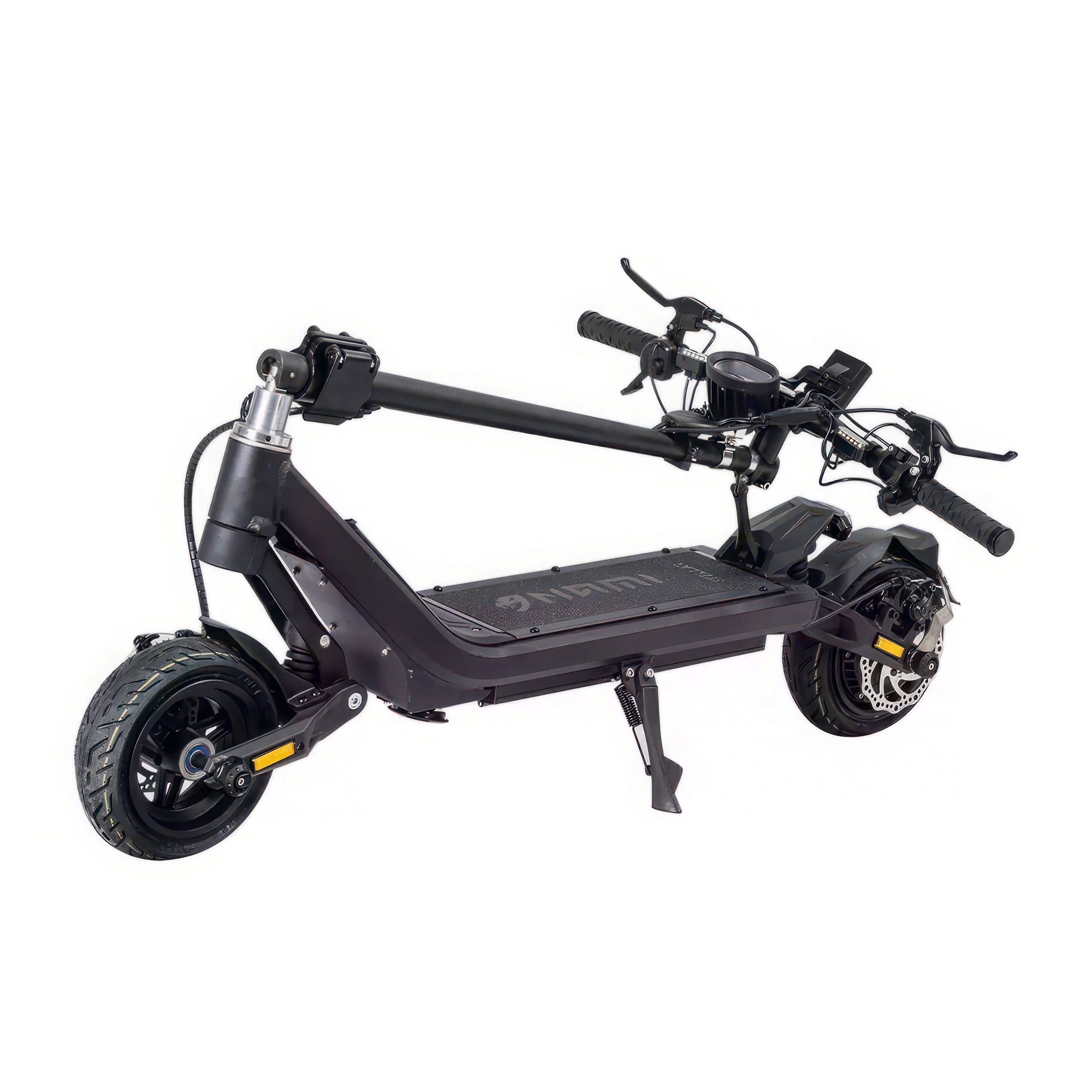 El Nami Stellar eléctrico scooter eléctrico está construido para darle un paseo cómodo, incluso en carreteras con baches. Tiene muelles que absorben los baches y grandes neumáticos de 9 pulgadas que se agarran bien a la carretera. Puedes ajustar los muelles para que se sienta mejor, ya sea en carreteras lisas o con baches. Los frenos funcionan muy bien, para que puedas parar con seguridad. Tampoco pesa mucho (26,5 kg), por lo que es fácil de mover cuando no estás en marcha. Aunque la Stellar es fuerte, se puede plegar hasta ocupar poco espacio