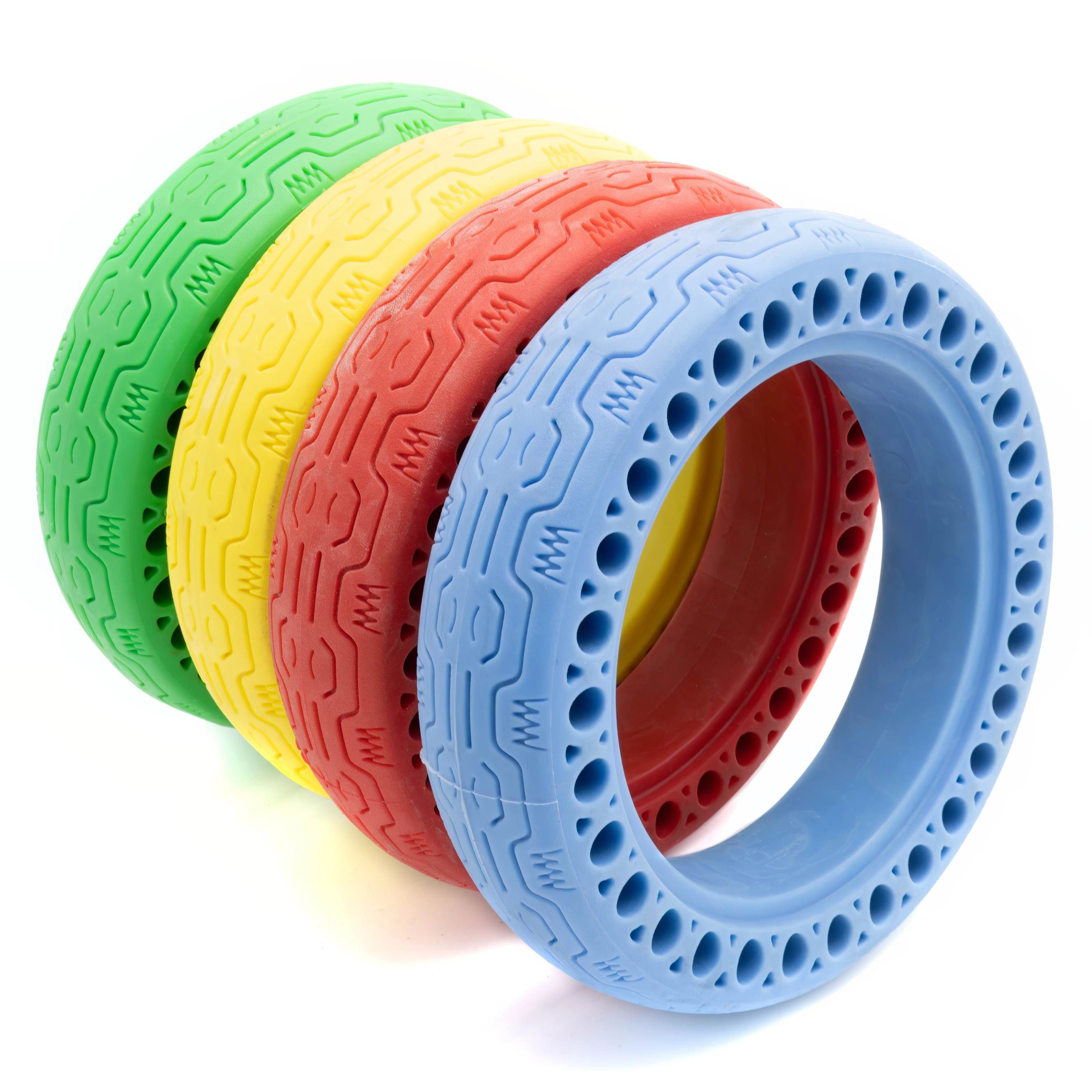 ¿Por qué conformarse con lo ordinario cuando puedes añadir un toque de color a tus viajes? Los neumáticos macizos de nido de abeja de colores ofrecen un toque único, diferenciando tu scooter eléctrico.