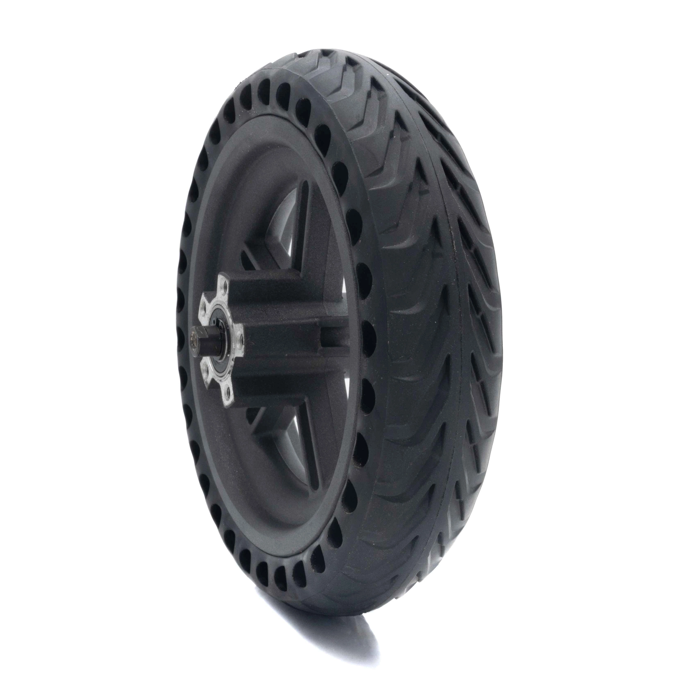 Al comprar una rueda completa para tu Xiaomi scooter eléctrico, obtienes un conjunto de piezas listas para montar. No tienes que seleccionar componentes individuales y preocuparte de si has elegido el tamaño correcto. Usted ya tendrá un neumático tubeless sólido en la llanta.