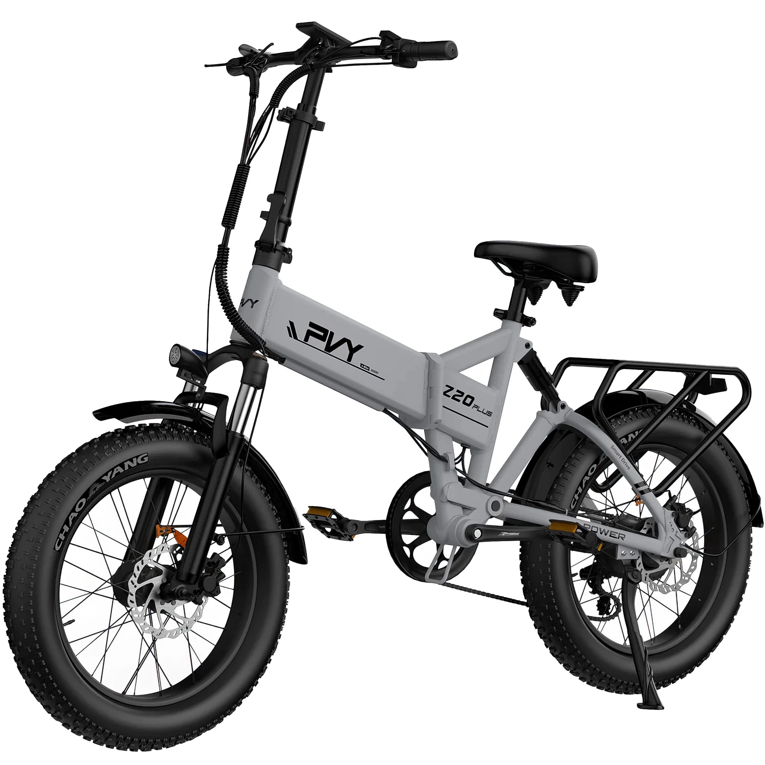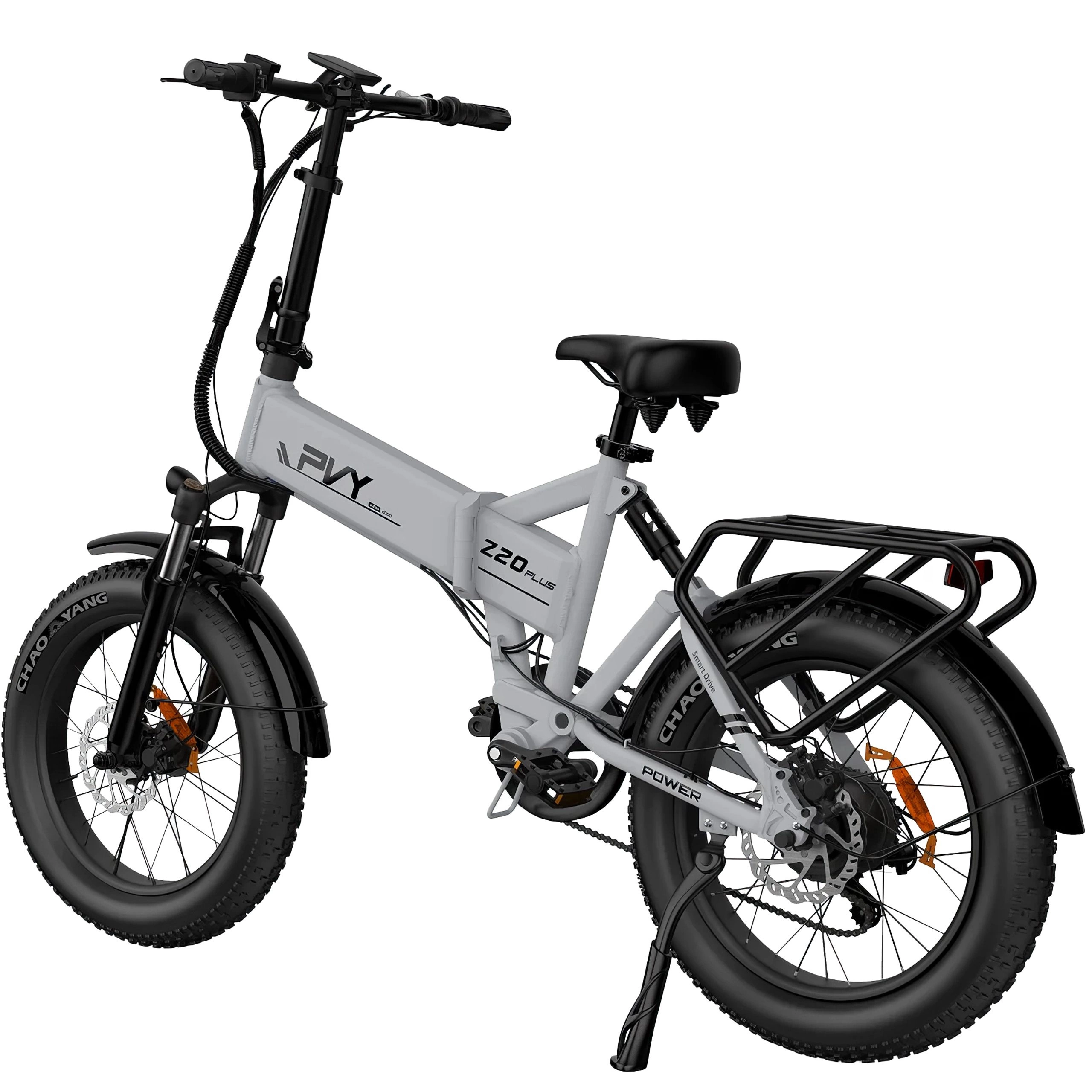 La bicicleta eléctrica PVY Z20 Plus 1000W incorpora un sistema de suspensión triple que la diferencia de muchas otras bicicletas eléctricas. Incluye una horquilla de suspensión delantera, un amortiguador mecánico trasero y un mecanismo de amortiguación adicional. Juntos, estos componentes trabajan para absorber los impactos y las vibraciones de la carretera.